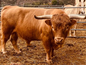 Highland/Brahman mix. Bull Calf. 2.5 years old. Gentle and social.